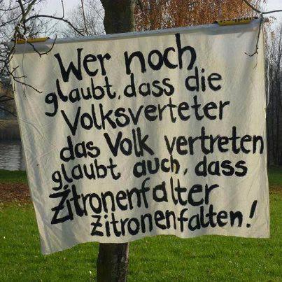 vorgestern ging eine Leserreaktion bei mir ein, die deutlich macht, wie weit das Vertrauen in die Volksvertreter inzwischen gesunken ist. Ich danke für den Beitrag und halte entgegen: Wer so denkt, kapituliert und am Ende gibt es weder Volk noch Vertreter, weder Zitronen noch Falter und sarkastisch bezogen auf Weißenfels-